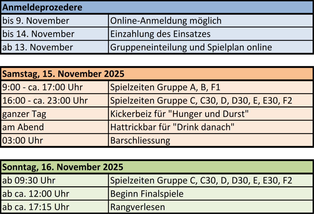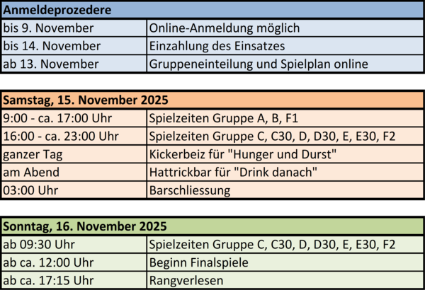 Einige Tage vor dem Hallenfussballturnier sind die Gruppeneinteilungen und der Spielplan auf der Homepage aufgeschaltet.